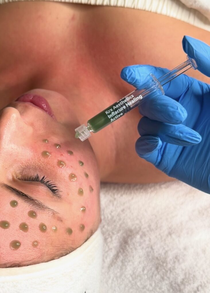 Az Inflacure egy innovatív, professzionális hatóanyagszérumra épülő kezelés, amelyet kifejezetten gyulladt, rosaceára, couperosára hajlamos, valamint aknés bőr kezelésére fejlesztettek ki. A koreai KRX Aesthetics legújabb fejlesztése célzottan támogatja az érzékeny, gyulladásra hajlamos bőr megnyugtatását és egyensúlyának helyreállítását. A kezelés során alkalmazott szinergikus hatóanyagok intenzív gyulladáscsökkentő, antibakteriális és nyugtató hatással segítik csökkenteni a bőrpírt, az irritációt és a gyulladt elváltozásokat.