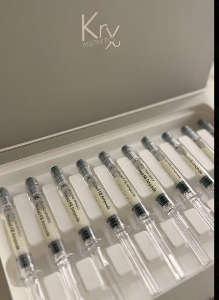Thread Fill egy innovatív, felszívódó kollagénszálas kezelés, amely látványosan segíti a bőr feszesítését és a ráncok csökkentését. A hatóanyagszérumba ágyazott, hidrolizált mikrokollagén szálak és anti-age peptidek a bőrbe olvadva a finom ráncokba simulnak, majd teljesen felszívódnak. A magas, 1000 ppm kollagéntartalom intenzíven támogatja a bőr hidratáltságát és rugalmasságát. Látványos és eredményes kezelés, mely sok esetben már az első alkalom után is észrevehető- a bőrkép simább, feszesebb és teltebb a kezelést követően.